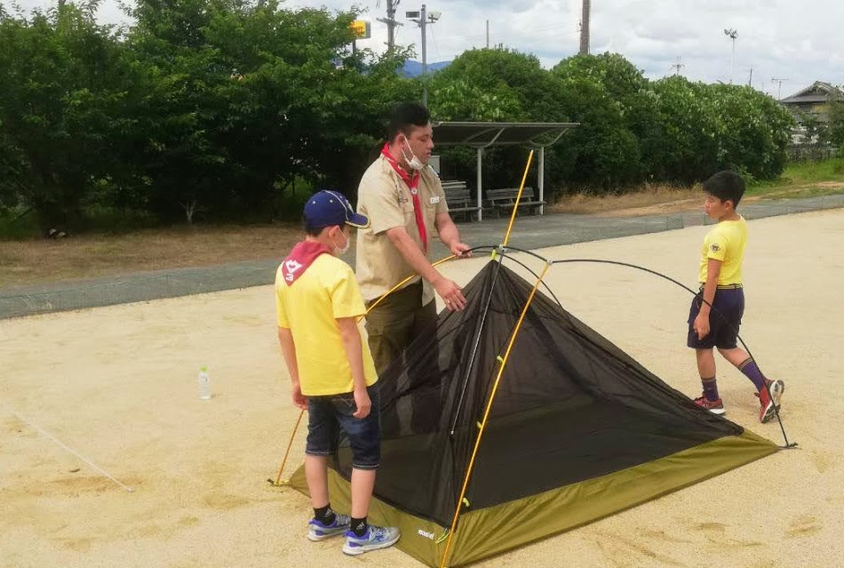 テント設営練習をします
