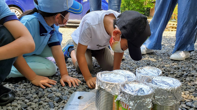 紙漉き体験と空き缶の炊き込みご飯づくりをしました